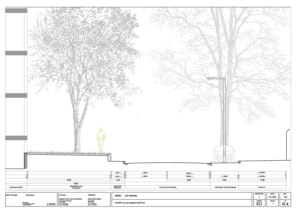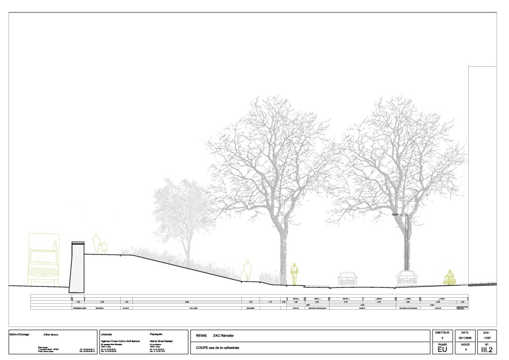 L’accroche au faubourg est traitée avec autant de soin que possible ; un pont au dessus de la voie ferrée est prévu…