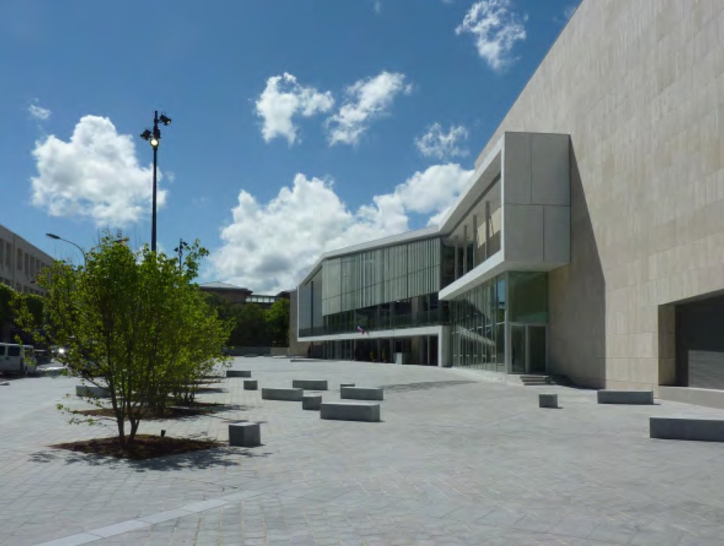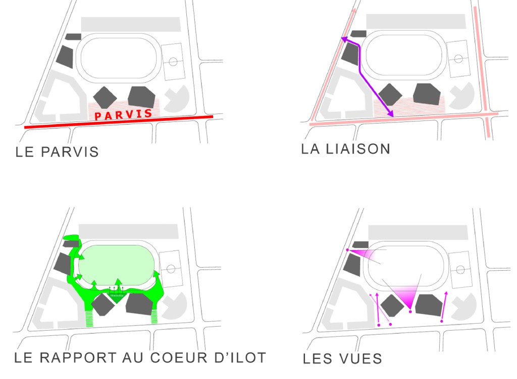 Pour cela il est proposé de requalifier le boulevard bordant le sud de l’îlot, pour y appuyer un parvis, interface entre la ville et le bâtiment principal.
